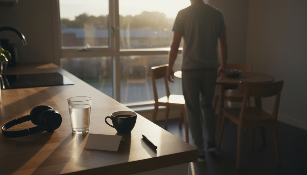 Design for the version of you who is not fully awake. Stage the night before. Put out clothes. Set a pen on a notebook. Place your headphones and laptop in one spot. Keep water visible. Wake at a consistent time that respects your sleep, not at a heroic hour you cannot sustain. The point is fewer micro decisions before you start thinking.